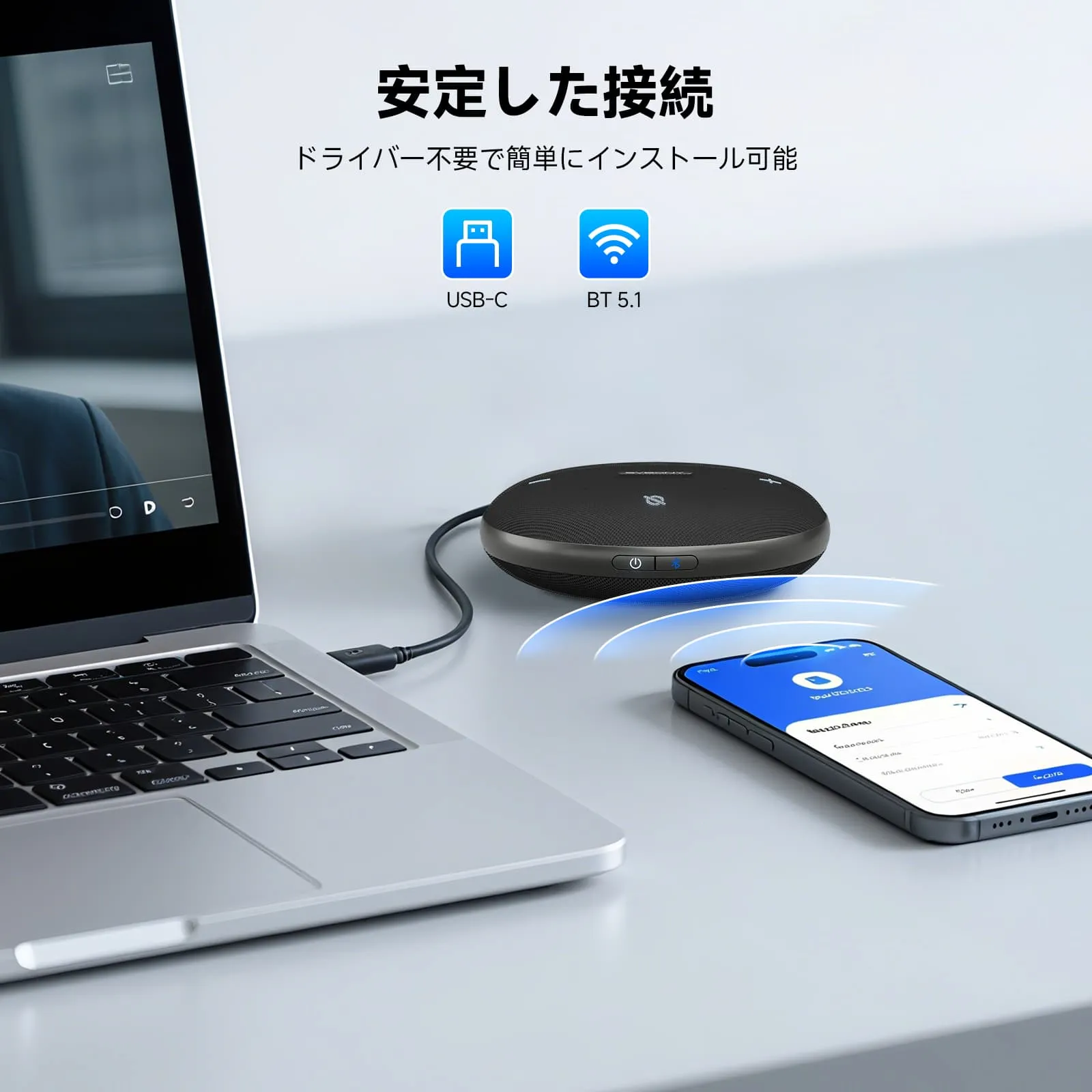 安定した高速接続:USB有線とBT5.1に対応し、より安定した接続、より高速な伝送速度、より低い遅延を実現します。接続の中断とはおさらばし、効率的なワイヤレス会議をお楽しみください。