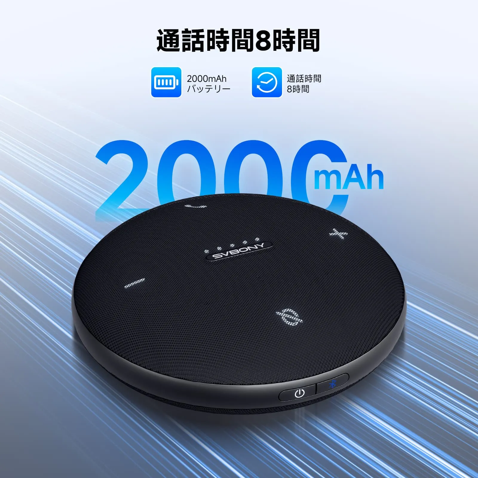 大容量2000mAhバッテリー:最大8時間の連続使用が可能。国境を越えたビデオ会議や出張など、会議中の電源不足の心配とはおさらば。当社の会議スピーカーがあれば、重要なコンテンツの提供に集中できます。