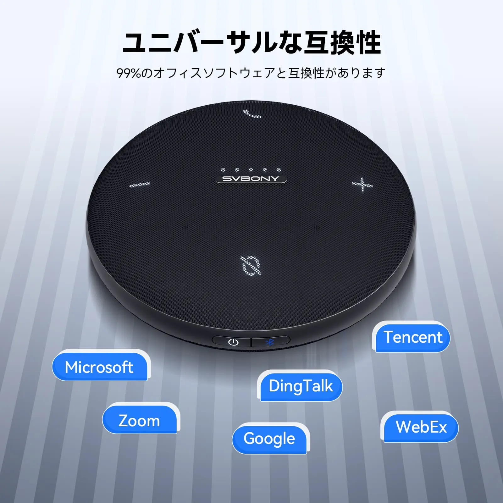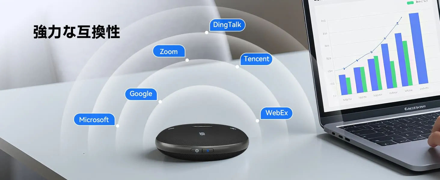 幅広い互換性:360度マイクはWindowsとmacOSで動作し、Zoom、Teams、Google Meet、Tencent Meeting、DingTalkなどの主要プラットフォームをサポートしています。