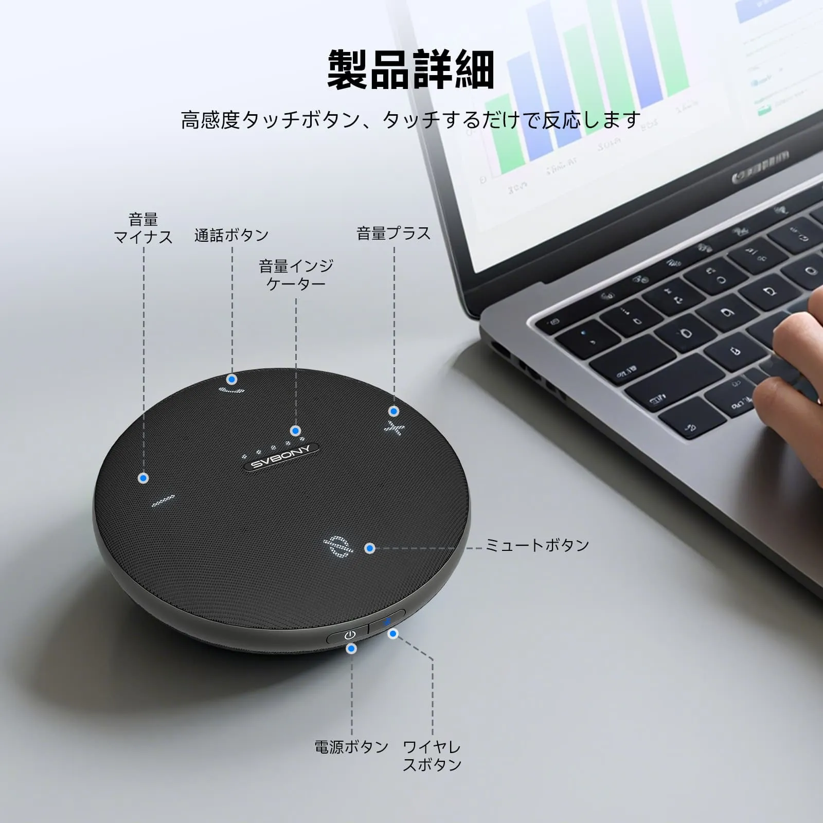 AI搭載 / ノイズリダクション/ワイヤレス充電 / 5Wスピーカー / マイク4個内蔵/クリアな音声キャプチャ 会議用