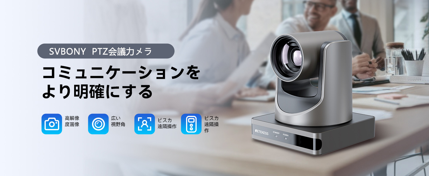 SVPTZ一体型ビデオ会議システムは、中~大会議室向けのプレミア 一体型ビデオバーです。内蔵のAIテクノロジーは音声認識装置を用いて位置制御し、発言者を自動追跡し、非常にシンプルな一体型ビデオ会議を体験してください。