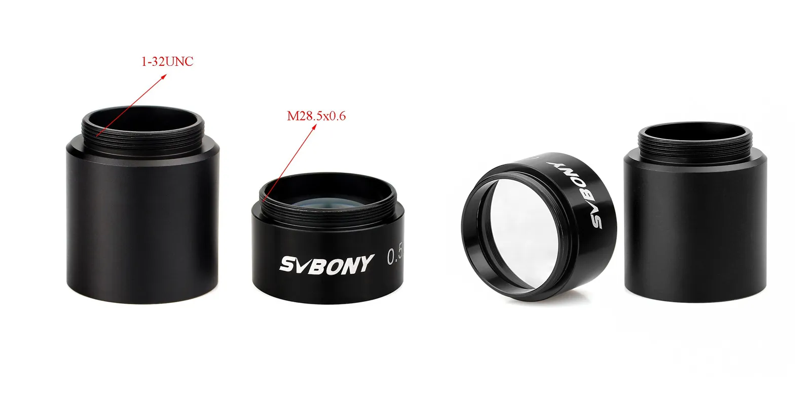 SVBONY1.25インチ0.5Xレデューサー Cマウントアダプター付き 写真撮影及び観察用