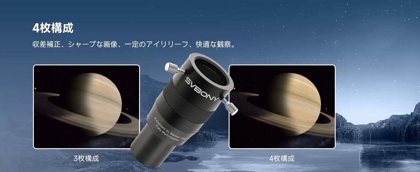 SV216 バローレンズ 1.25インチ 3x 4枚構成 惑星観測・写真撮影用