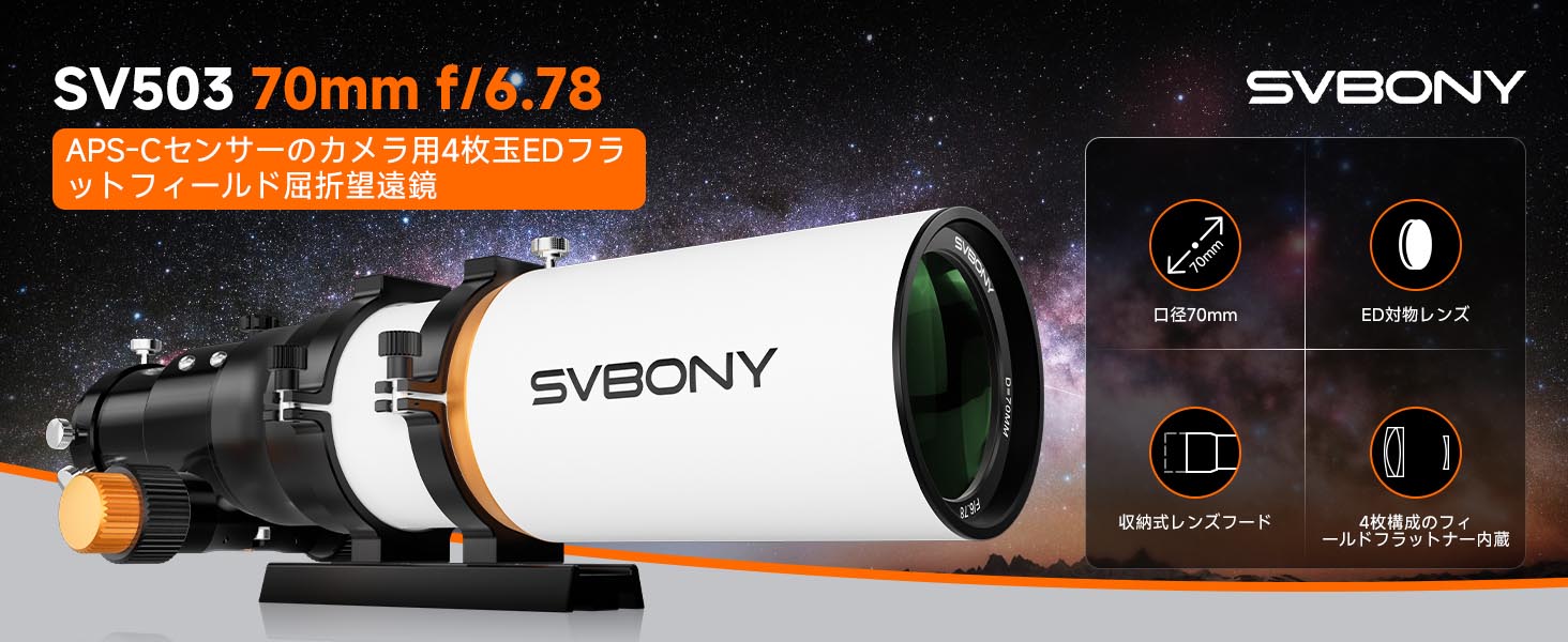 f/6.78と70mmの口径を持つSV503屈折望遠鏡は、銀河、星雲、星団などの明るく鮮明な画像を提供します。